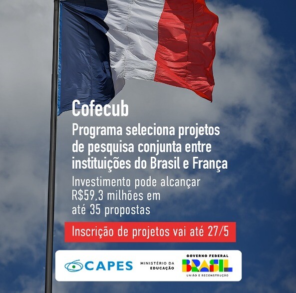 Está aberto até 20 de maio o prazo para cadastramento de novas instituições e até o dia 27 do mesmo mês o período de submissão de projetos do Edital nº 8/2024, a nova seleção do Programa CAPES/Cofecub. Serão financiadas até 35 propostas em duas chamadas. Todos os procedimentos devem ser feitos pelo Sistema de Inscrições da CAPES (Sicapes).