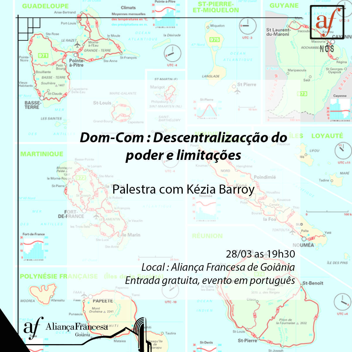 Palestra Dom-Com: Descentralização do Poder e limitações Em 28/03/17 18:14. TweetWhatsApp Palestra com Kézia Barroy Fonte: Aliança Francesa Categorias: eventos Listar Todas Voltar